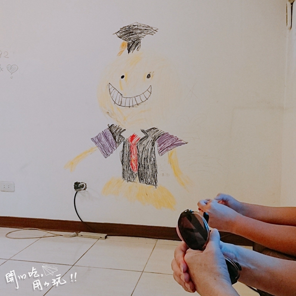 但刷油漆前,客廳還有一面小朋友畫的粉彩牆還沒有清理乾淨,經過上次的教訓,我決定弄水擦!